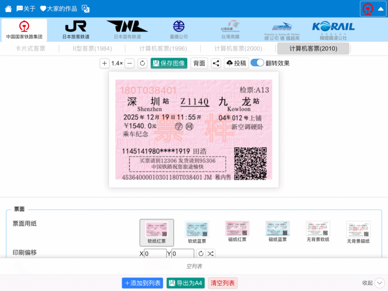 之前就知道有「火车迷」这么个群体,他们会研究火车线路、拍火车、坐特定班车收集对应的火车票等等。之前纸质车票被正式取消,所以有人做了这么个网站来生成纸质车票。